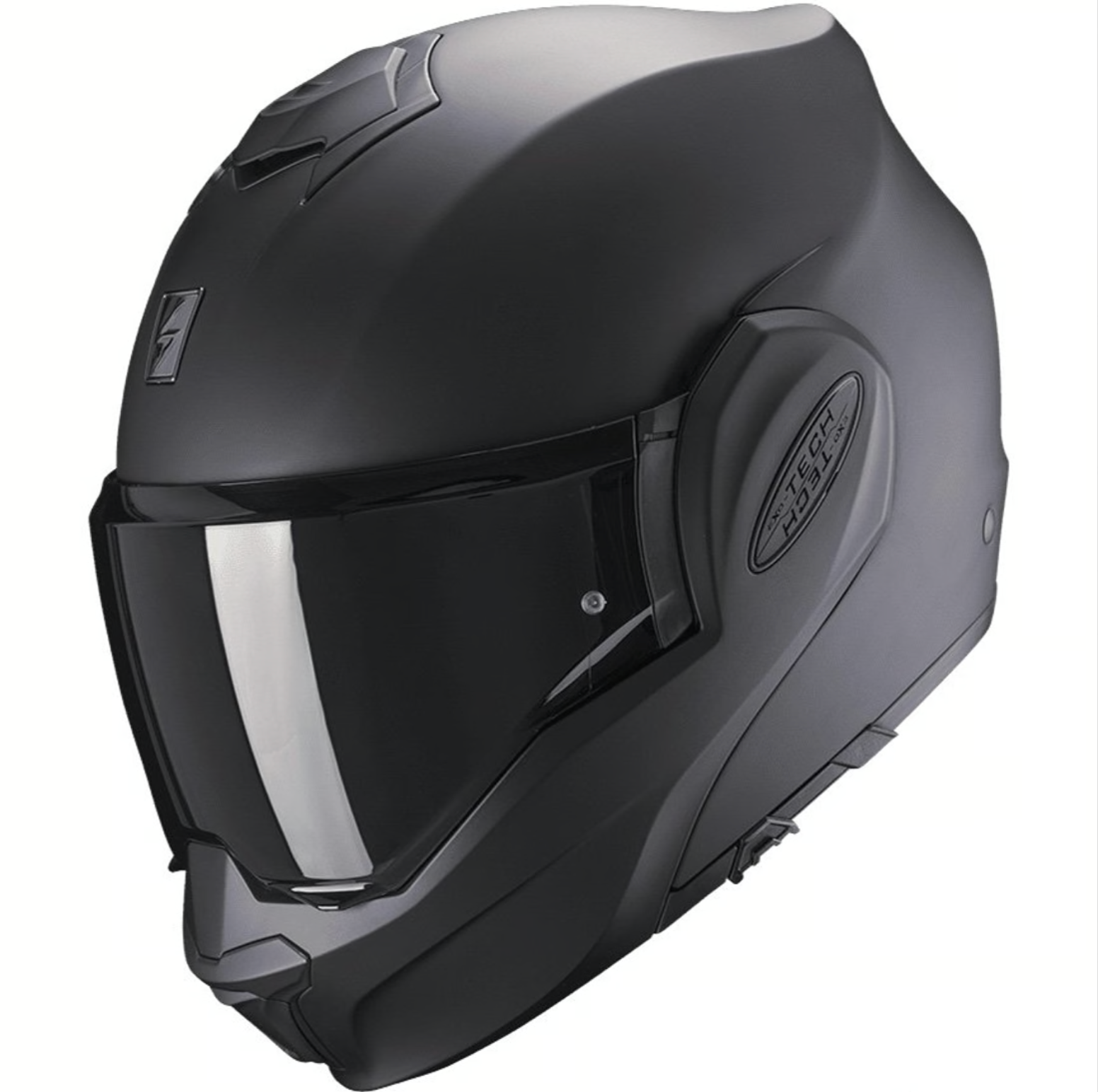 Casco Scorpion Exo-Tech Evo . Casco modulare molto versatile e funzionale, realizzato in policarbonato con omologazione ECE 22-06. L'Exo-Tech ha una pratica visiera parasole, imbottitura interna Kwikwick3®, Pinlock Max Vision (incluso) e un efficiente sistema di ventilazione. Il casco è omologato P/J per circolare in tutta sicurezza sia con il casco chiuso in modalità integrale che con il casco aperto in modalità jet. Si distingue per offrire grande aerodinamica, funzionalità e massimo comfort.